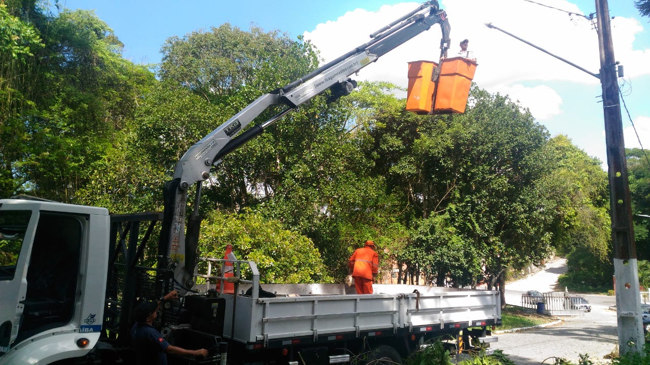 Aproveitando-se que o caminhão munck do Campus I está em nosso Centro, está sendo realizado um trabalho de poda preventiva.