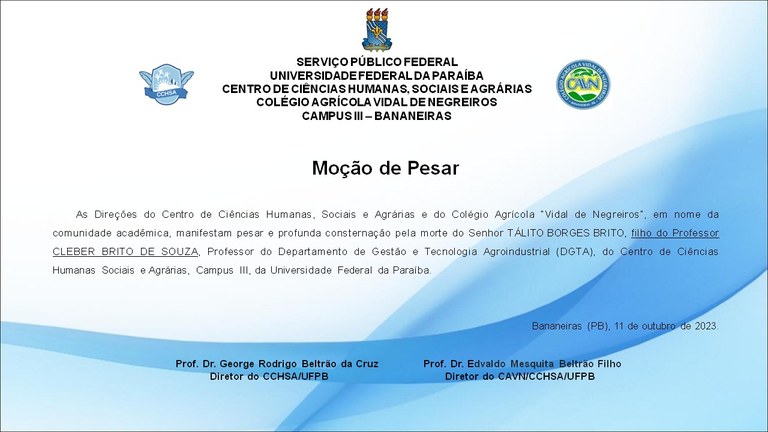 Moção de Pesar - Tálito Borges Brito, filho do professor Cleber Brito de Souza