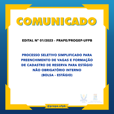 EDITAL Nº 01/2023 - PRAPE/PROGEP-UFPB - PROCESSO SELETIVO SIMPLIFICADO PARA PREENCHIMENTO DE VAGAS E FORMAÇÃO DE CADASTRO DE RESERVA PARA ESTÁGIO NÃO OBRIGATÓRIO INTERNO (BOLSA - ESTÁGIO)