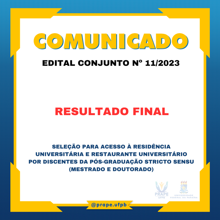 EDITAL CONJUNTO Nº 11/2023 - PRAPE/PRPG/UFPB - RESULTADO FINAL