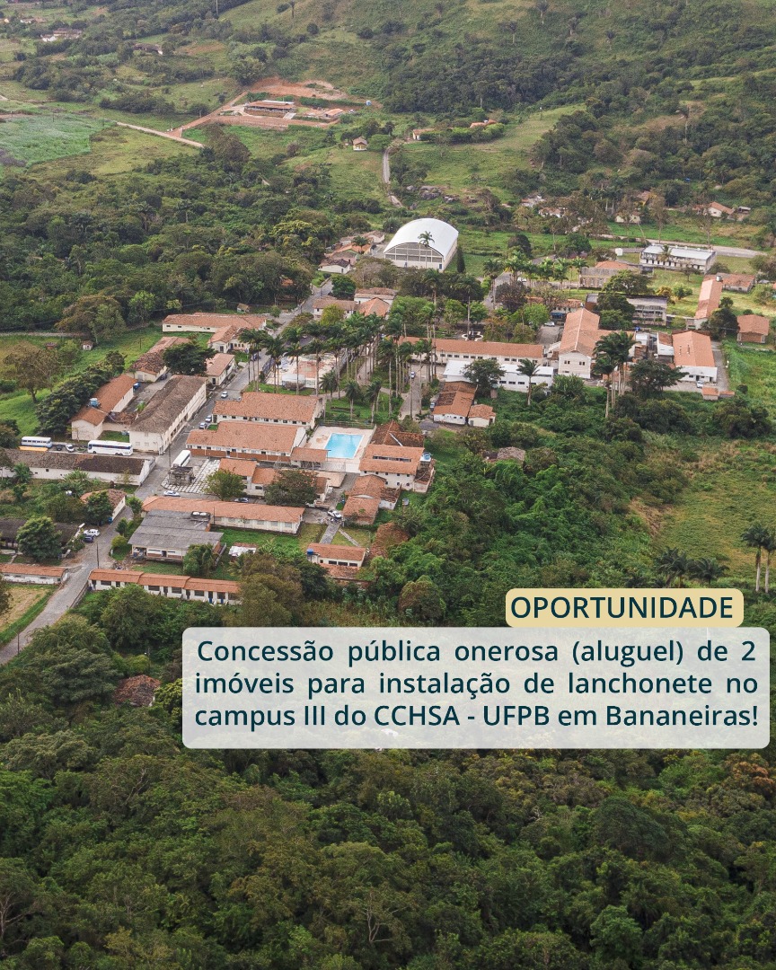 07/10/2025 | Concessão pública (aluguel) de 2 imóveis para instalação de lanchonete no campus III do CCHSA- UFPB em Bananeiras |