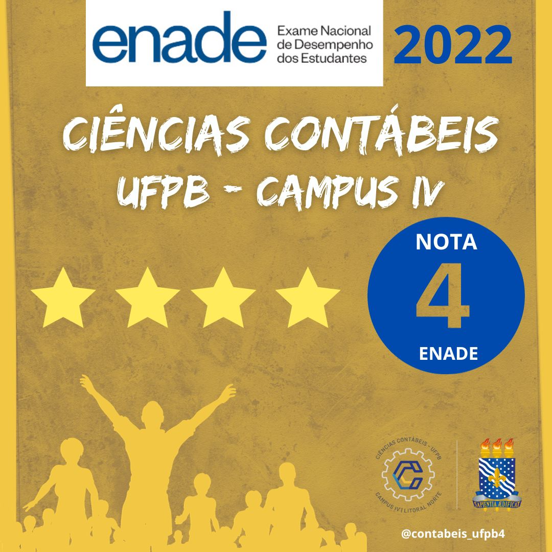 O Curso de Ciências Contábeis da UFPB Campus IV atinge a nota 4 no ENADE 2022.