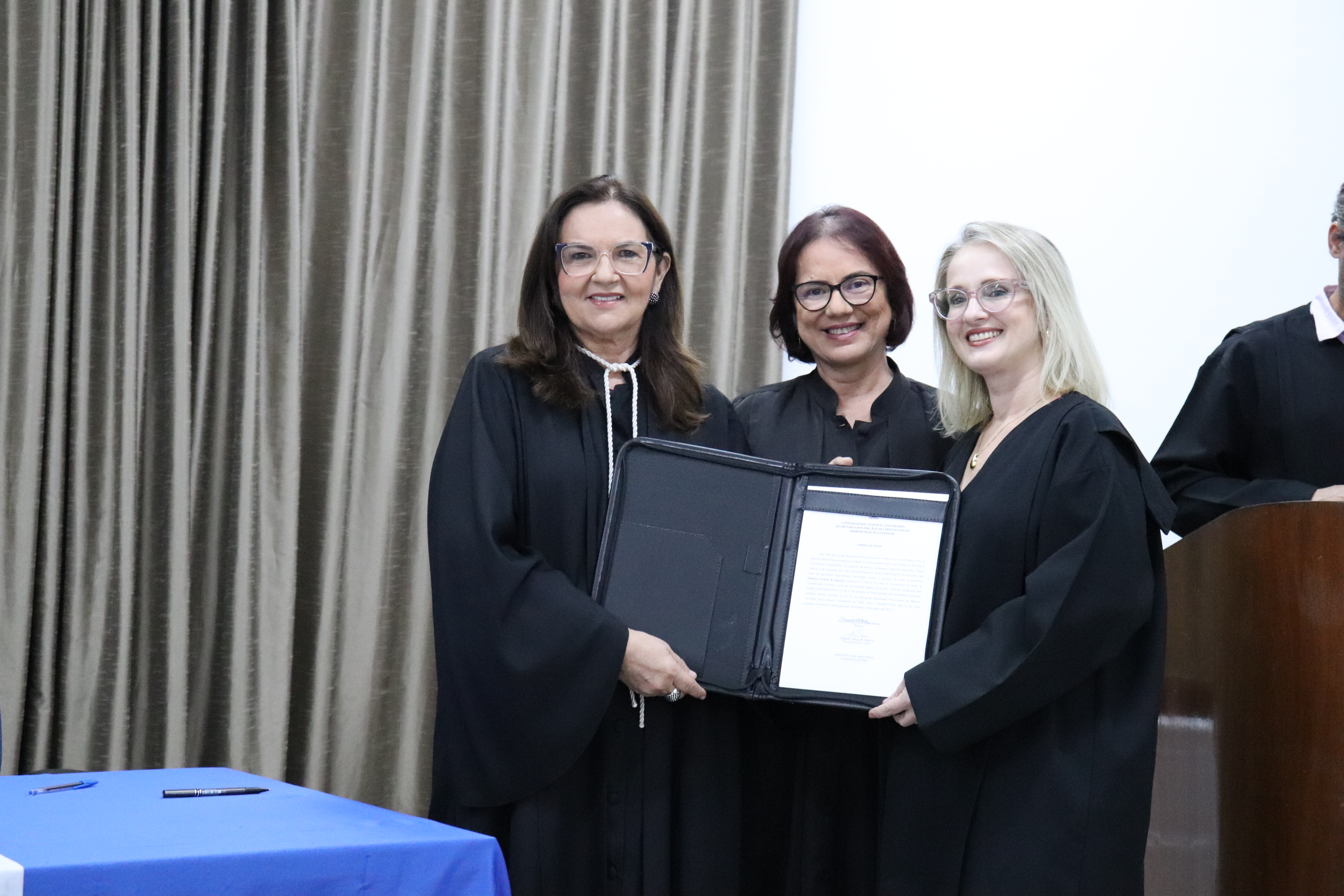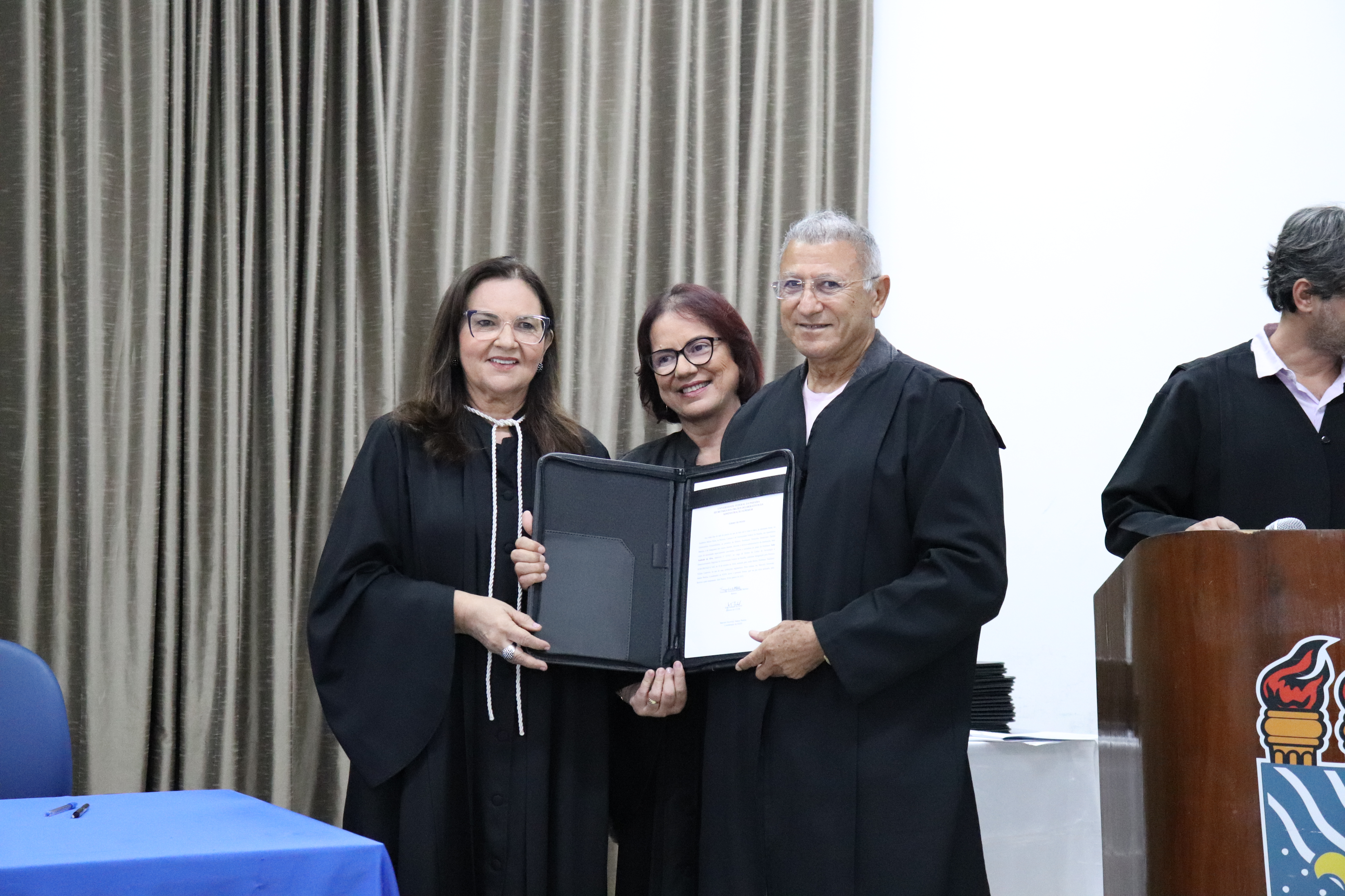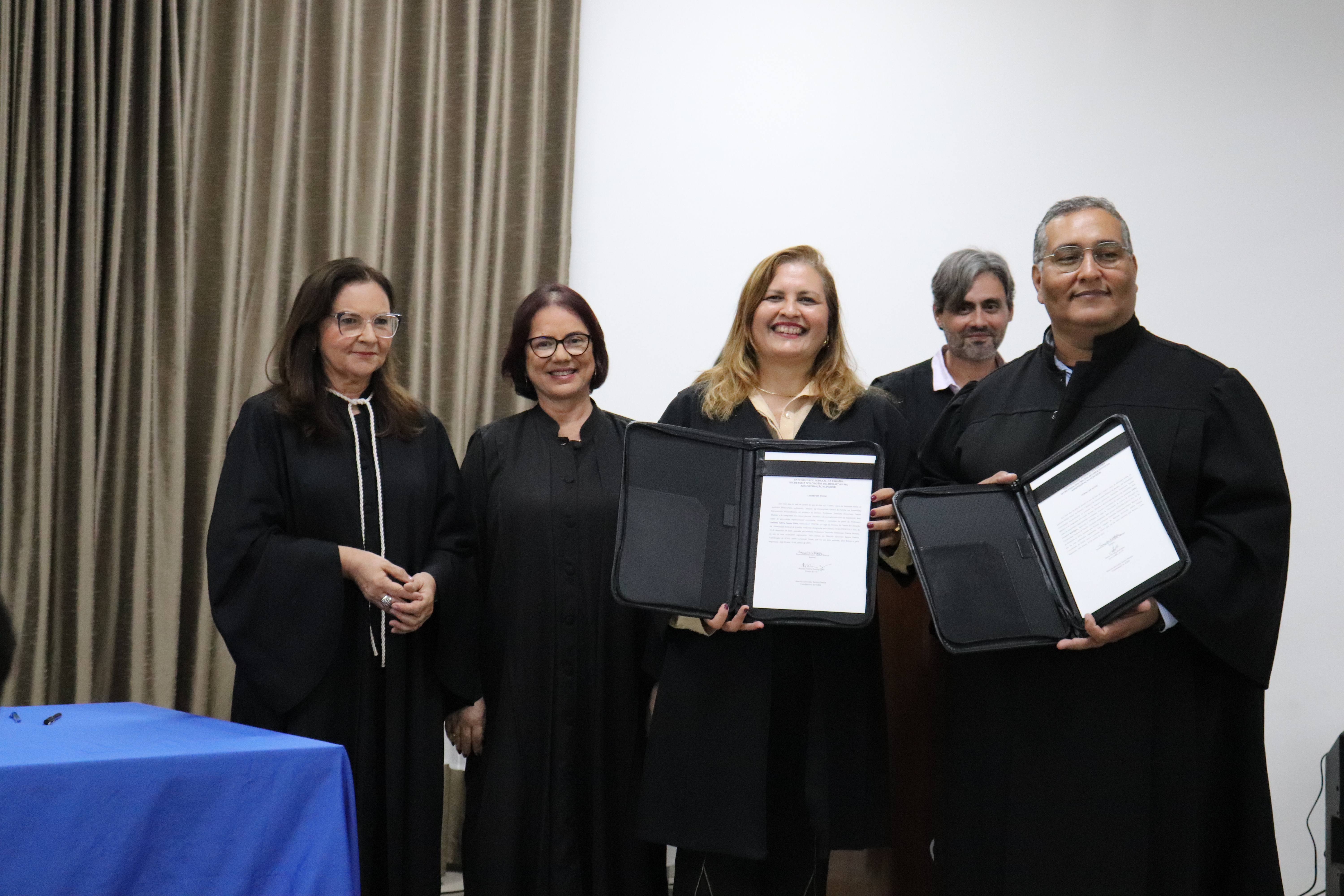 Fizeram parte da mesa da solenidade, presidida pela Reitora Terezinha Domiciano, a Vice-Reitora Mônica Nóbrega; o Pró-Reitor de Administração (Proplan) George Beltrão – representando os ex-diretores de Centro –; o Procurador-Chefe da Procuradoria Federal na UFPB, Flávio Pereira; o coordenador dos Órgãos Deliberativos da Administração Superior (Sods), professor Marcelo Sitcovsky; a Vice-Presidente do Sindicato dos Docentes da UFPB (Adufpb), Rita Lobo; e o Coordenador geral do Sindicato dos Trabalhadores em Ensino Superior do Estado da Paraíba (Sintespb), Valdevino Neto.