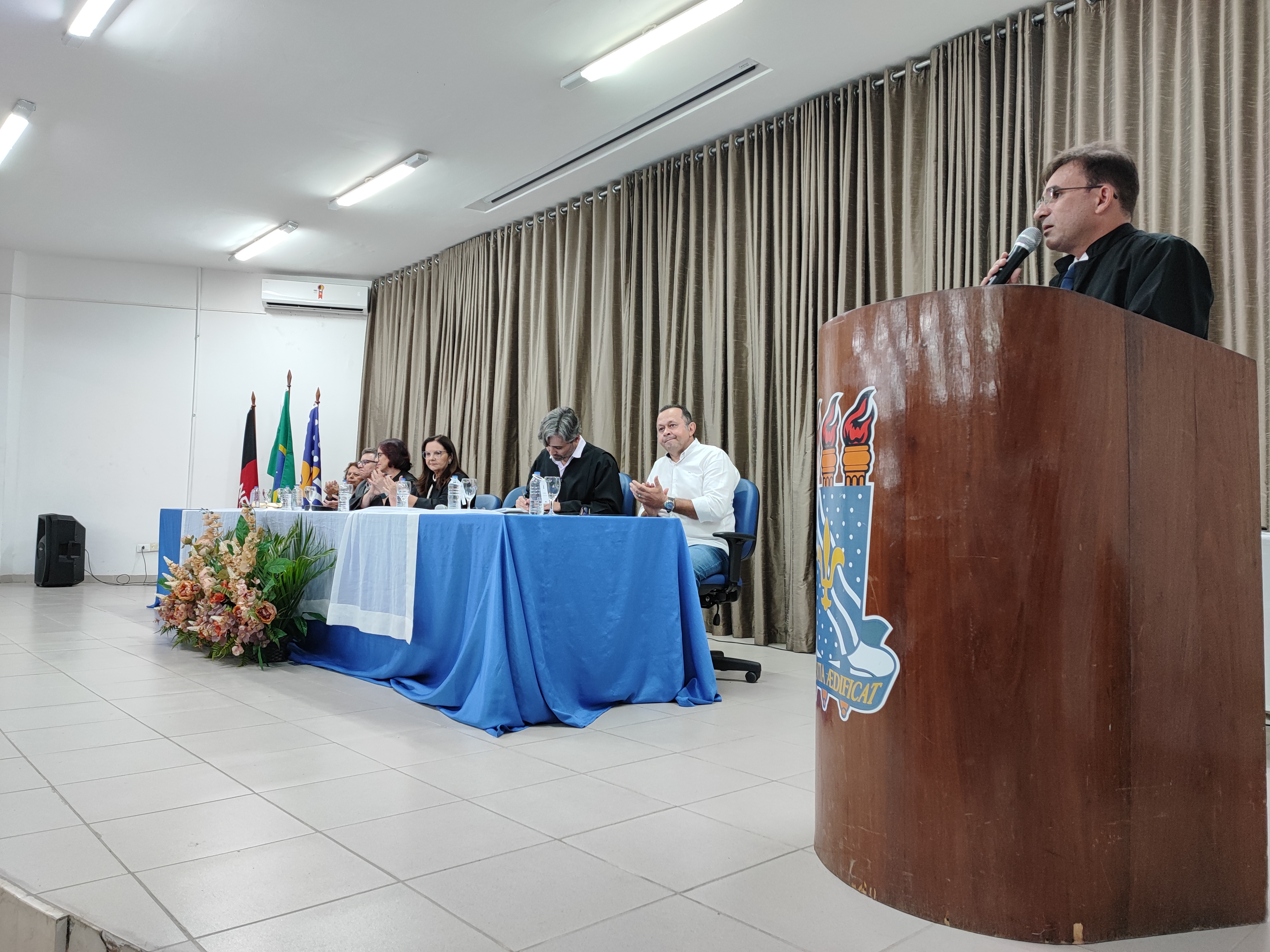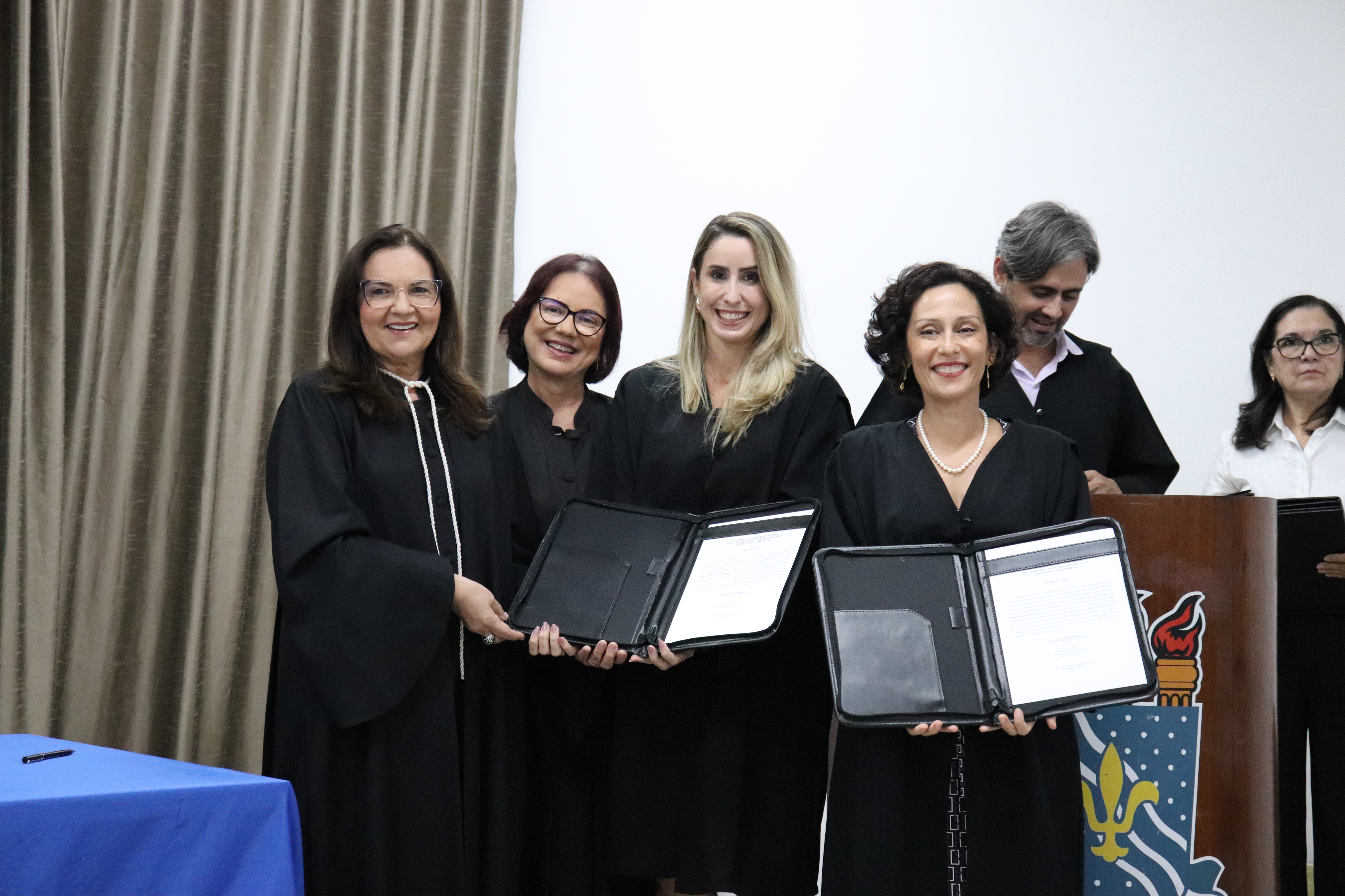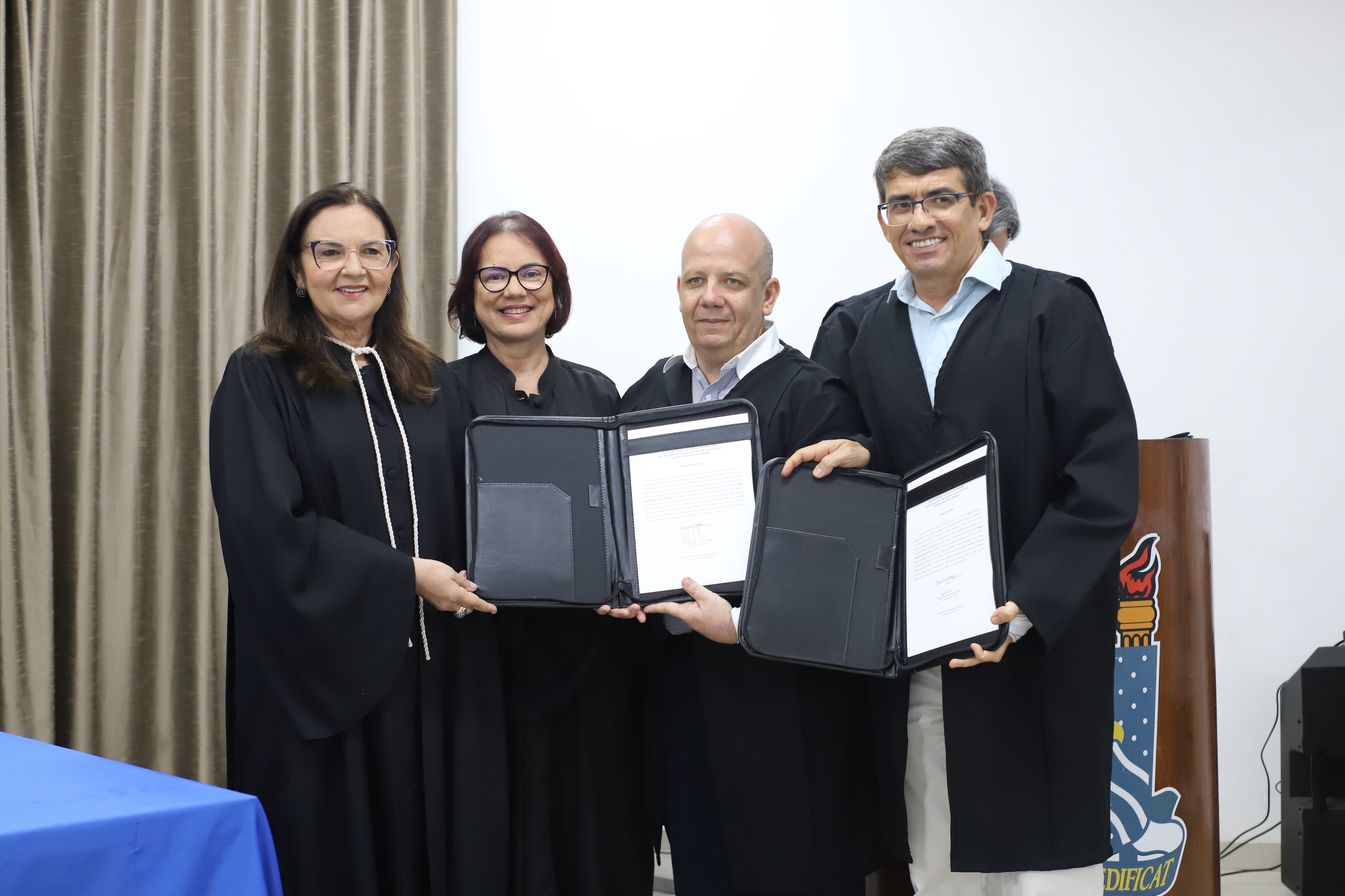Fizeram parte da mesa da solenidade, presidida pela Reitora Terezinha Domiciano, a Vice-Reitora Mônica Nóbrega; o Pró-Reitor de Administração (Proplan) George Beltrão – representando os ex-diretores de Centro –; o Procurador-Chefe da Procuradoria Federal na UFPB, Flávio Pereira; o coordenador dos Órgãos Deliberativos da Administração Superior (Sods), professor Marcelo Sitcovsky; a Vice-Presidente do Sindicato dos Docentes da UFPB (Adufpb), Rita Lobo; e o Coordenador geral do Sindicato dos Trabalhadores em Ensino Superior do Estado da Paraíba (Sintespb), Valdevino Neto.