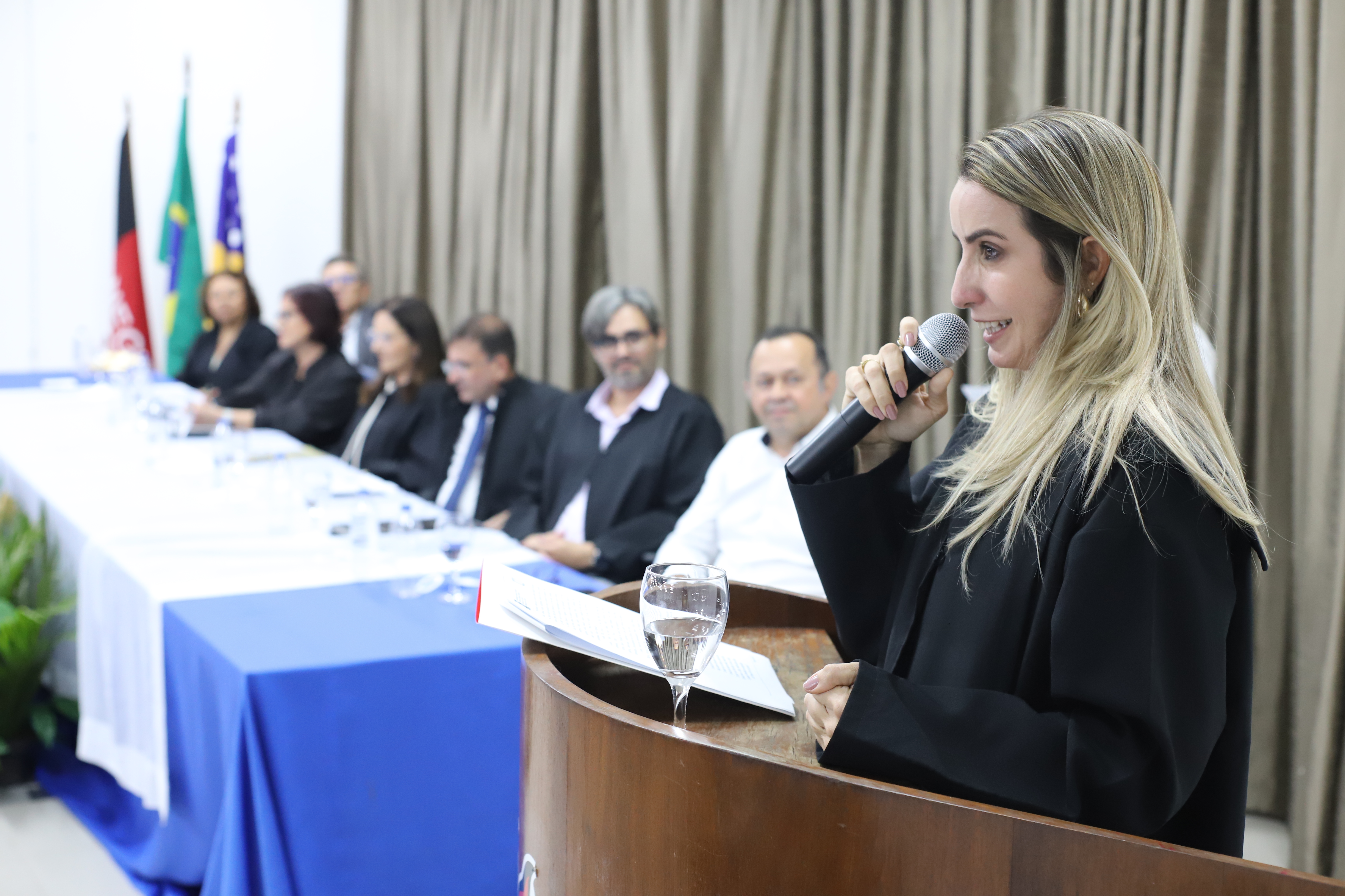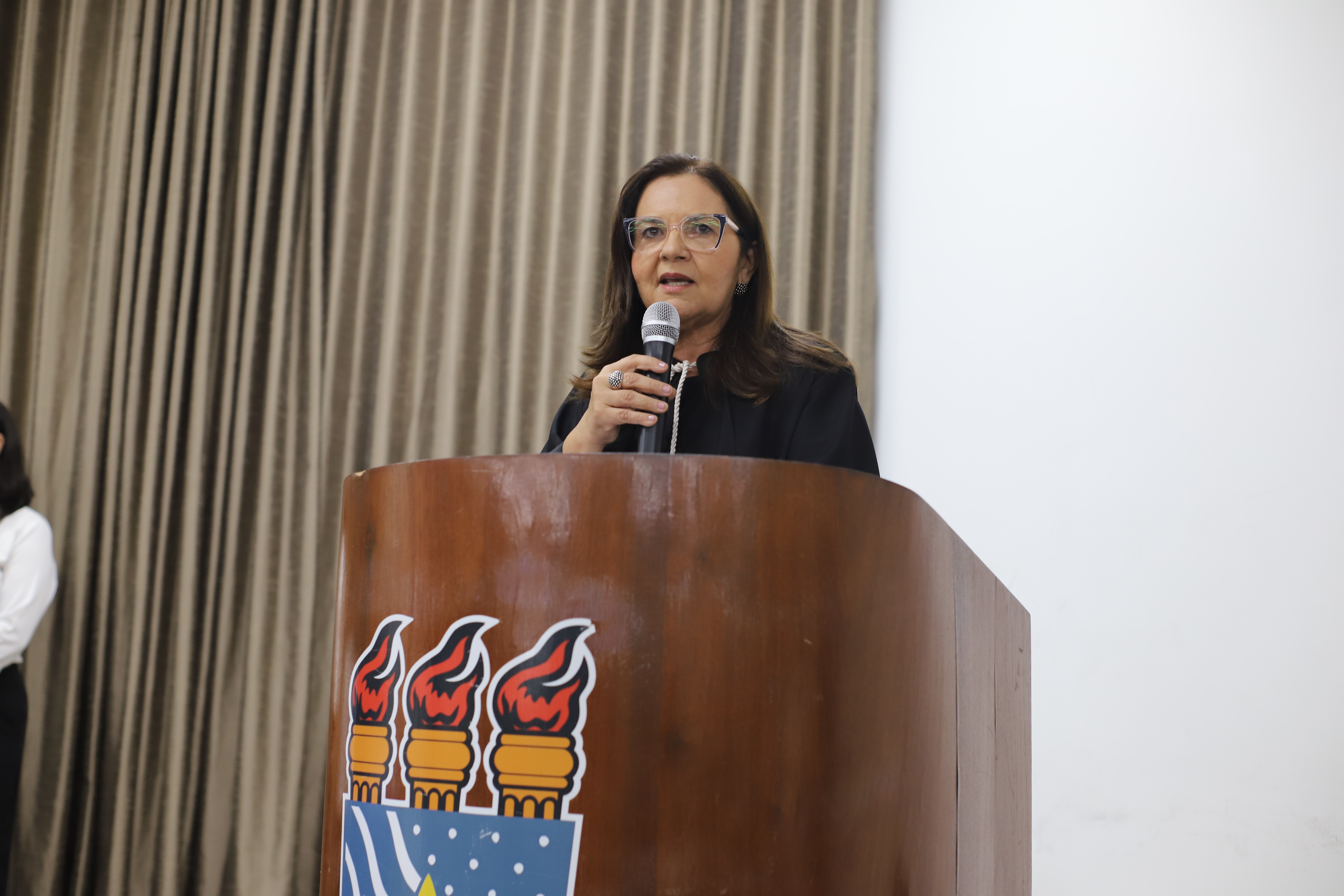 Os diretores e vice-diretores empossados foram representados na solenidade pela diretora Anne Alencar, reeleita para a gestão do Centro de Ciências Jurídicas (CCJ). Em um discurso emocionado, ela lembrou as dificuldades enfrentadas durante os quatro anos da gestão anterior da universidade – não eleita pela comunidade acadêmica –, em que a pluralidade e a democracia não foram respeitadas. “Hoje nos encontramos e nos reencontramos em meio ao início da construção coletiva de um sólido projeto de universidade pública, liderado por duas grandes mulheres, reeleitas e empossadas, em um mandato legítimo, democrático e republicano”, afirmou a diretora do CCJ.